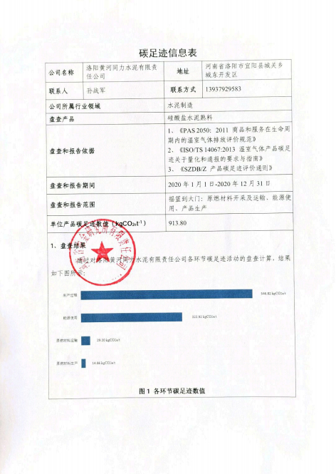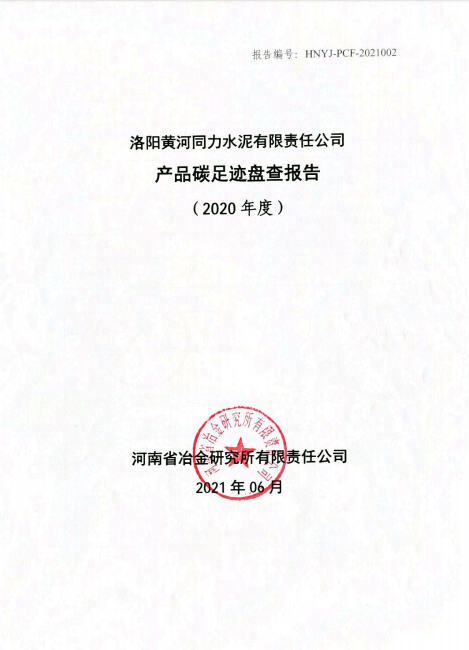 洛陽黃河同力水泥有限責任公司產(chǎn)品碳足跡盤查報告(2020年度)
